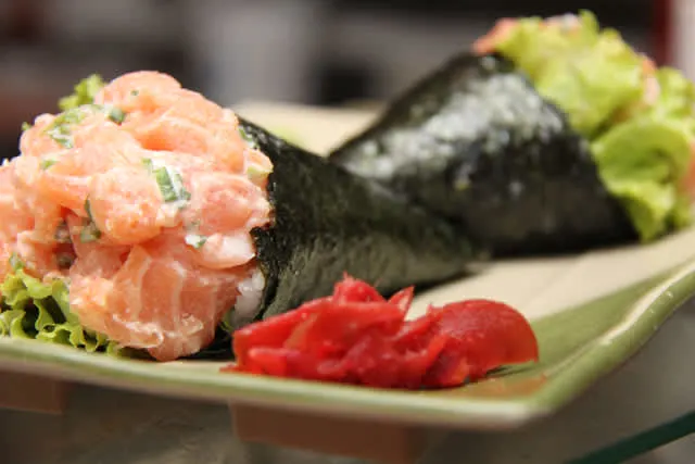 2 unidades de temaki hot super crocantes 100 gramas de salmão grelhado cada temaki!!. E aí vai encarar essa delícia.?